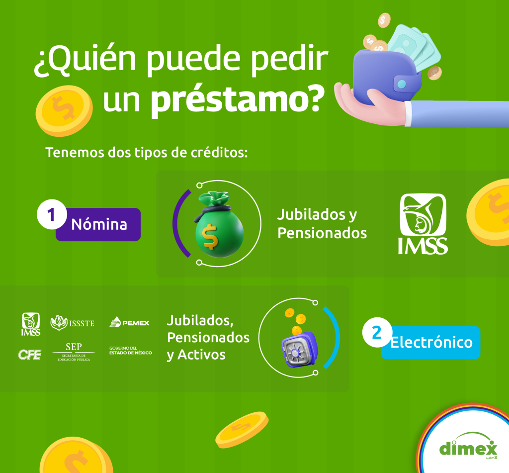 En dimex ofrecemos flexibilidad según el producto: el Crédito Electrónico ofrece montos desde $2,000 hasta $200,000 MXN. Si eres pensionado del IMSS y optas por el Crédito Nómina, puedes acceder a montos desde $3,000 hasta $500,000 MXN. Ambas opciones cuentan con cobertura nacional y plazos cómodos que se adaptan a tu presupuesto.