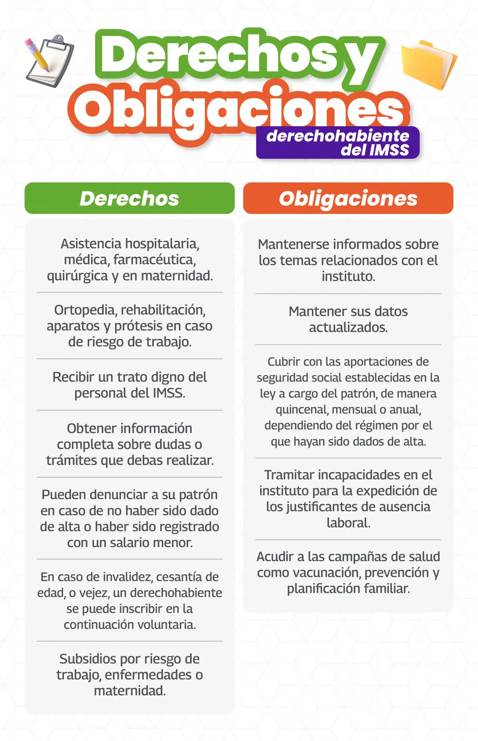 Aunque los derechohabientes tienen varios derechos, también deben cumplir con las siguientes obligaciones: