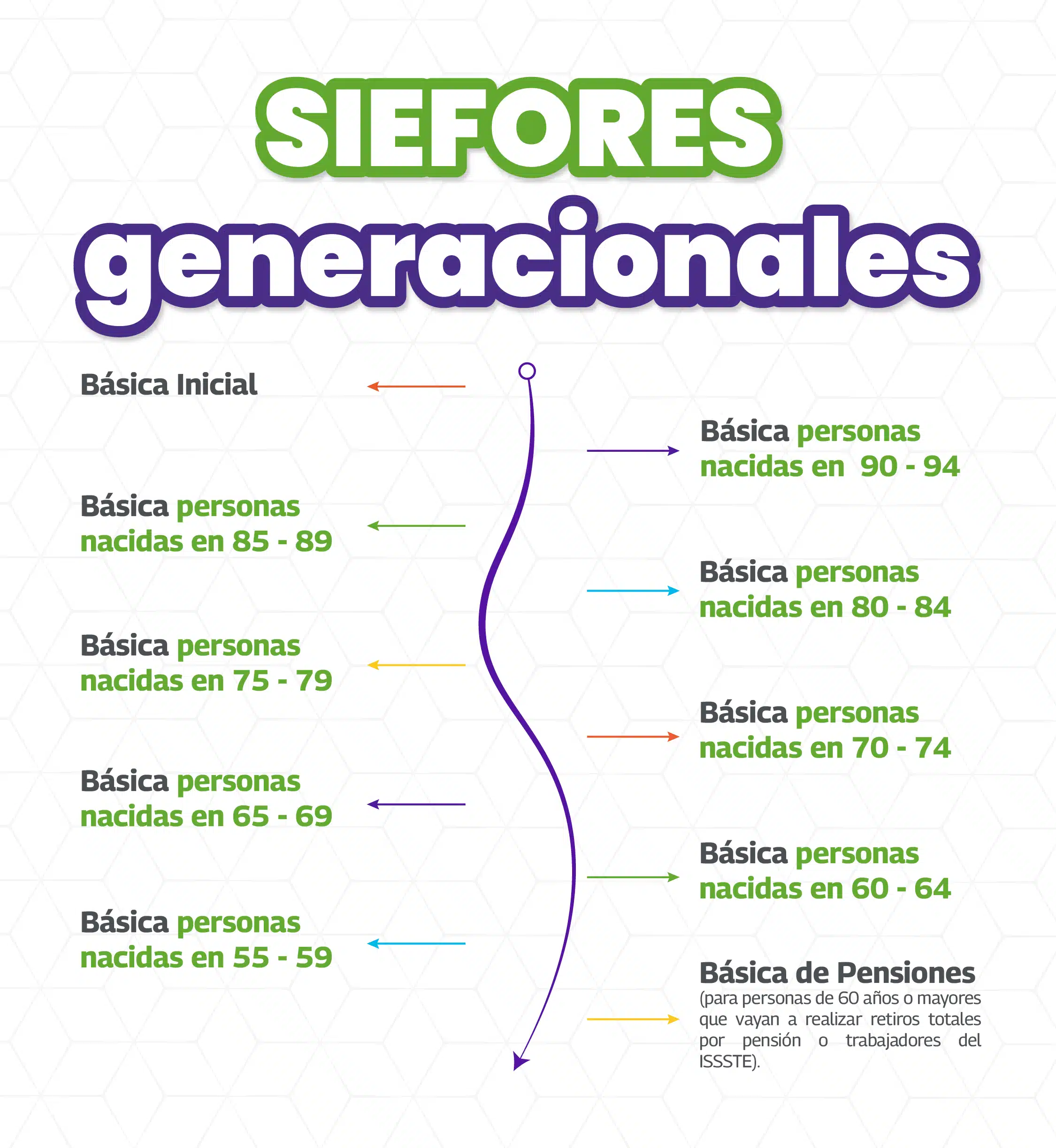 - Básica de Pensiones(para personas de 60 años o mayores que vayan a realizar retiros totales por pensión o trabajadores del ISSSTE).